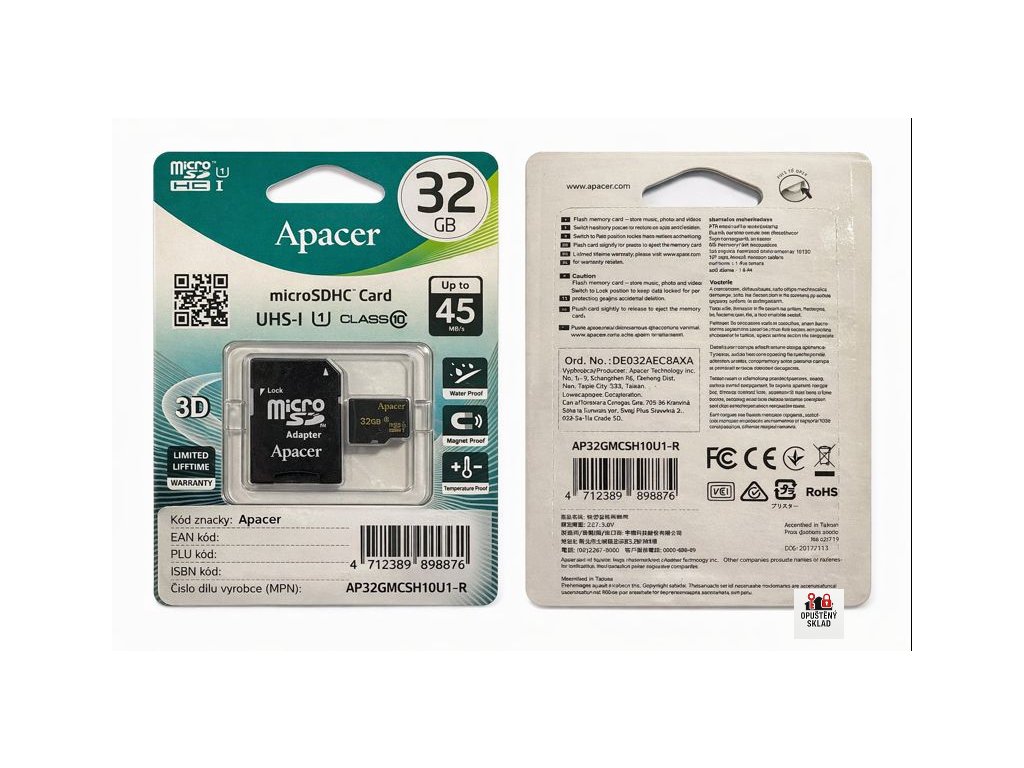 Apacer microSDHC karta 32 GB UHS-I Class 10 + adaptér (bazar)