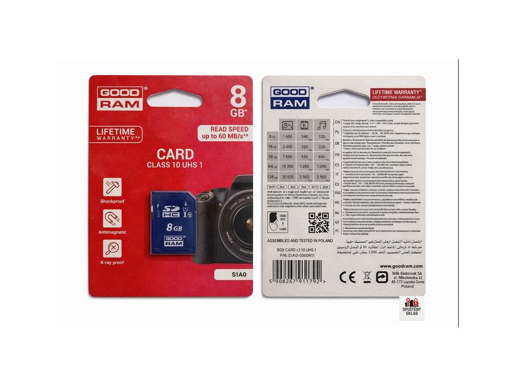 GOODRAM SDHC karta 8 GB Class 10 UHS-I –(bazar)